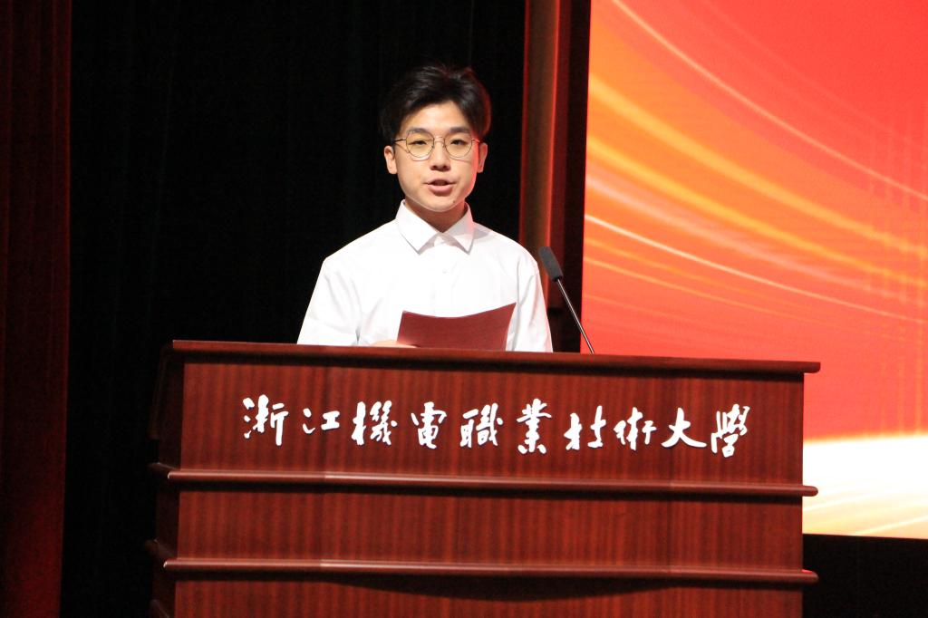 新生代表王思博首先感谢全员师生的热情欢迎。他满怀憧憬地表达了对未来大学生活的期待与决心,希望能在良性的竞争中与志同道合的伙伴们共同成长,在大学的时光里实现德智体全面发展,并祝愿所有同学都能掌握自己的人生方向。