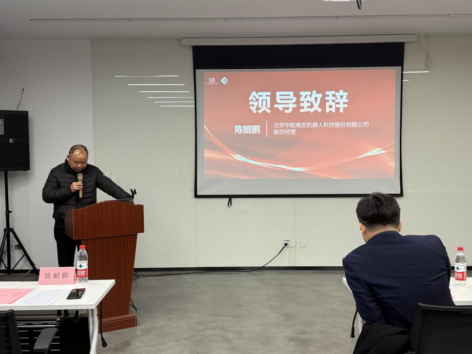 华航唯实副总经理陈鲲鹏代表企业发言。他对同学们的到来表示热烈欢迎。他强调,企业高度重视与学校的合作,始终将人才培养作为企业可持续发展的核心战略。基于前期的两次入企学习基础,此次企业专门安排了由资深技术骨干和管理人才组成的实习指导团队,将为同学们提供全方位的实习指导和支持。他希望同学们能珍惜此次实习机会,快速融入企业岗位,主动将理论知识与生产实践相结合,在实践中积累经验、提升能力。