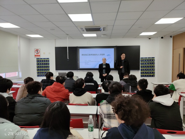当日下午,在6-306教室,座无虚席。周志高副总工程师以 “数控加工技术发展与未来人才需求” 为主题,为在场学子开启了一扇通往行业前沿的窗口。他结合自身在凯达机床多年的研发与管理经验,从当前数控技术的高精度、智能化、复合化发展趋势讲起,深入剖析了在工业4.0及“中国制造2025”战略背景下,数控领域对人才知识结构和能力素质提出的新要求。