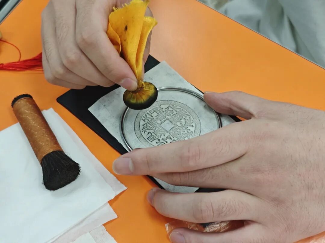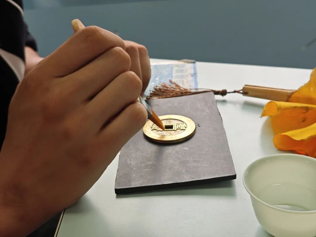动手实践,沉浸体验在老师的指导下,同学们屏息凝神,从清理古币、铺纸定位、捶打固形到蘸墨拓印、小心揭取,大家手持拓包细致勾勒古币纹理,在一锤一拓间感受时光沉淀的韵味。经过耐心操作,一幅幅清晰的拓片作品逐渐成型,展现出同学们对传统技艺的专注与热忱。