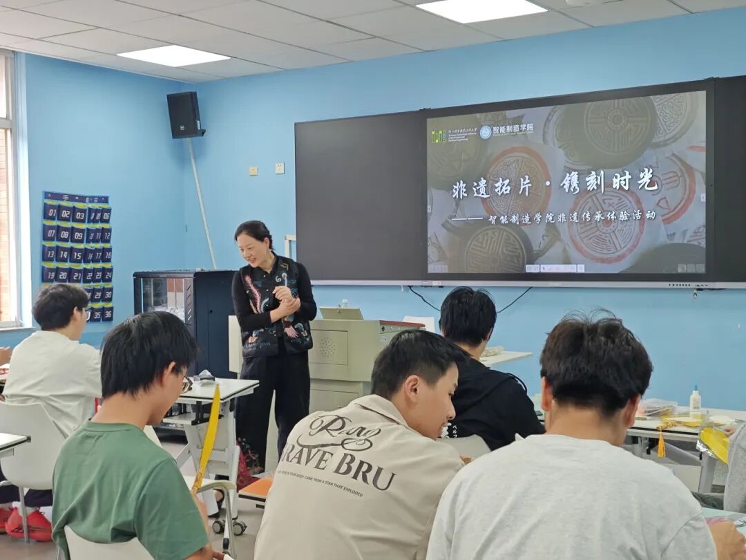 为近距离感受中华优秀传统文化魅力、增强文化自信、体悟工匠精神,2025年9月25日,智能制造学院“精工文化大讲堂”特邀非遗传承人,开展“匠心传承,拓印千年”拓片技艺实践课。20名同学在指导下亲手体验古老技艺,深刻领略中华传统文化的深厚底蕴。