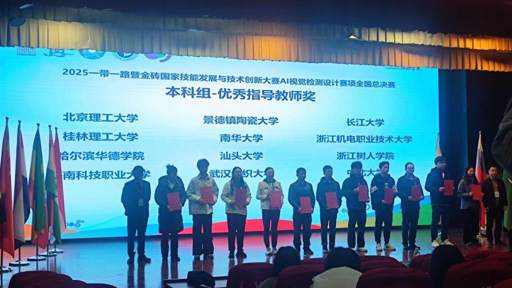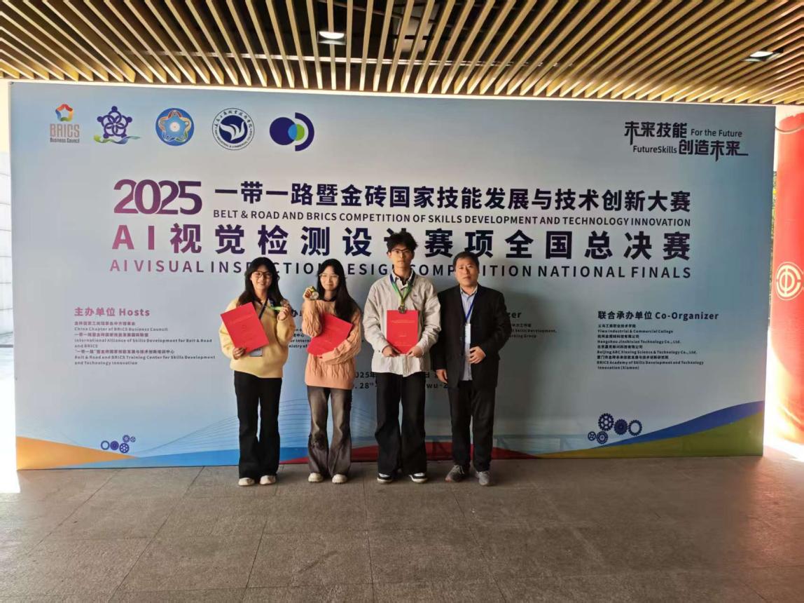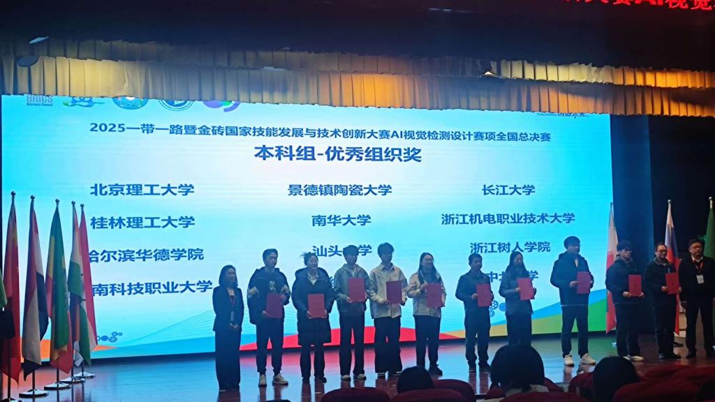 近日,2025年第九届一带一路暨金砖国家技能发展与技术创新大赛AI视觉检测设计赛项全国总决赛在义乌工商职业技术学院圆满落幕。本届大赛由以“未来技能、创造未来”为主题,吸引了全国214所院校的1749名学子同场竞技。经过激烈角逐,浙江机电职业技术大学智能制造学院代表队凭借过硬的专业实力,在竞争尤为激烈的本科组中脱颖而出,荣获全国总决赛本科组二等奖,并且荣获优秀指导教师奖、优秀组织奖。这一佳绩,是我校技能型本科教育扎实成效的生动体现,充分展现了本科层次技术技能人才的卓越创新能力。